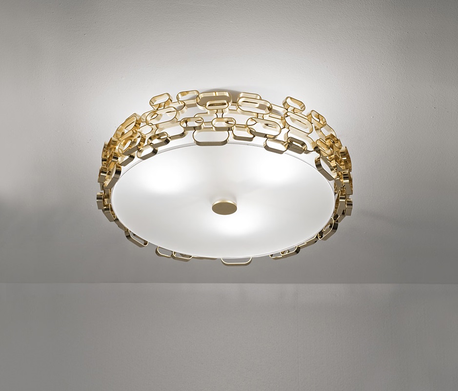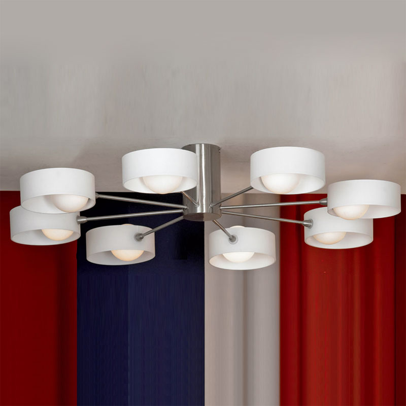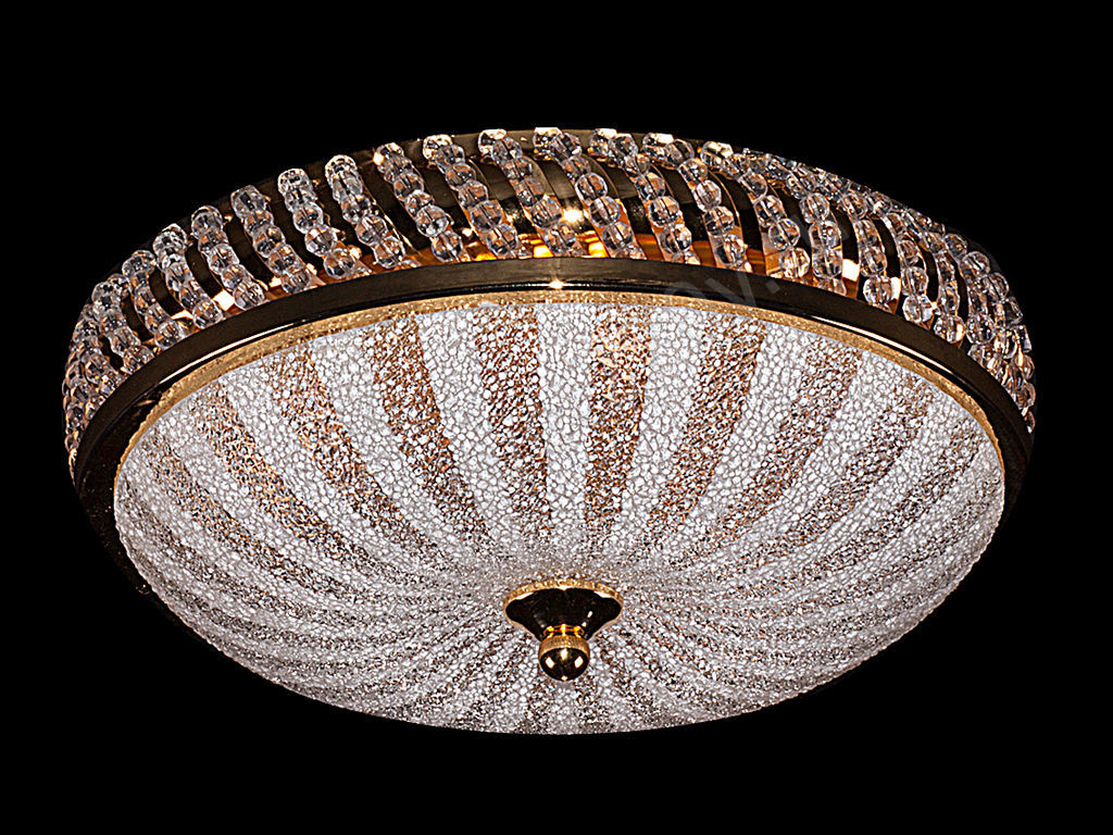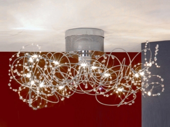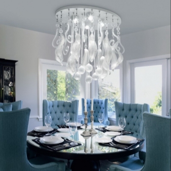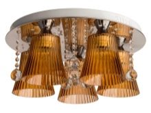 Such devices for lighting are not suspended. The fixture of the chandelier goes straight to the ceiling. This option will be ideal for rooms of a modest area with a low ceiling. Ceiling models can also be made of plastic or glass.