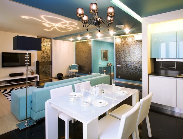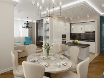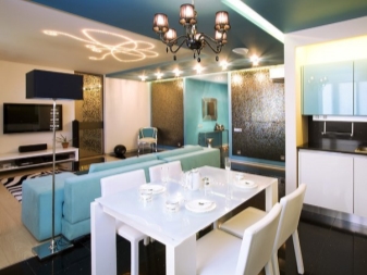 It is worth noting that with the help of correctly selected lighting it is possible to zone the space in the rooms. For example, if your living room is combined with the dining room, then there should be a highlight of the dining group. If several zones are combined in the room, then you should use two chandeliers, and also choose an alternative option for the functional zone, for example, a floor lamp, etc.