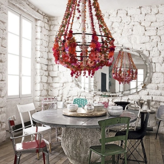 However, here it is worth considering some points. Such chandeliers will look perfect if your home has high ceilings. If the ceilings are low, then such an item can upset the balance of the room and everything will look heavy. For the kitchen, it is not worth buying such constructions at all.
