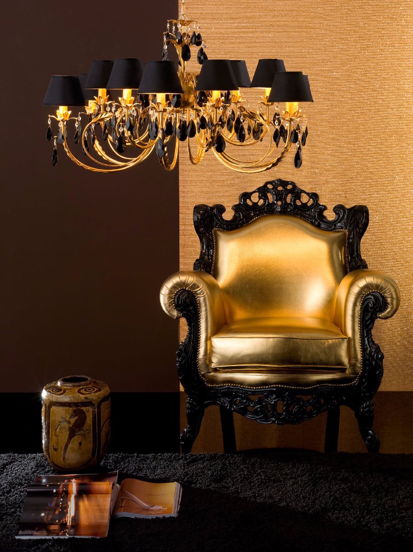 As for the shade, this season gold and black crystal, purple lampshades, a combination of gray and black are in fashion. At the same time, select a product of such a tone that you will be impressed with and harmoniously combined with the surrounding objects.