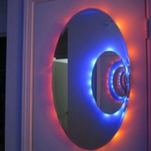 Very beautiful options are obtained from the LED strip and a system of mirrors. Such lamps can be hung both on the ceiling and on the wall. The resulting light corridor fascinates and attracts. This can be done on their own - with sufficient knowledge of electricians, some prefer to order from the master.