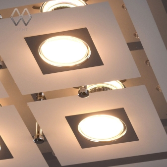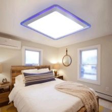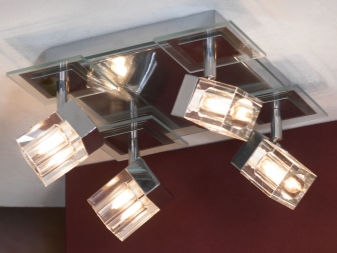 - Ceiling. As the name implies - such devices are mounted on the ceiling. They are used in rooms with low ceilings. They look like they are stuck directly to the surface. Usually this type of fixtures is very simple in form - they are round or square devices. This is due to the fact that the excesses in the decoration can interfere with people who are in the room, because the ceiling is low.
