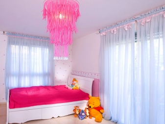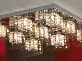 Such lamps can boast a variety of materials from which they are made. In the shops you can find crystal, acrylic, metal, paper models. The most popular devices are made of special plastic or glass. Such models are cheaper than crystal ones. From these materials it is much easier to do something unusual.