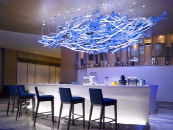 Speaker options are good for cafes and other entertainment., although installing them at home is also a good idea, especially for home parties. The materials of which lamps are made, allow you to make them with rings, in the form of a ball, a triangle. It can be chaotic lines or smooth. Having chosen LED lamps, it is possible to solve the problem with illumination for a long time and exactly as you want, the choice is great.