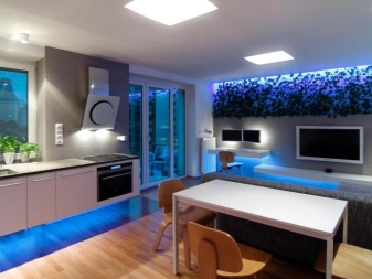 There are options from the LED strip. Such models are often equipped with motion sensors. When the cabinet opens, the backlight turns on. For indoor lighting dark cabinet - ideal.