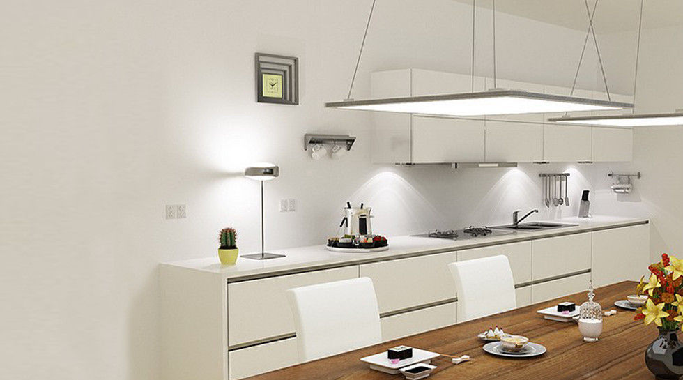 For children, you need to take non-frivolous tablet luminaires or flat devices that are difficult to reach. They are difficult to accidentally knock the ball, a toy. For the design of the kitchen fit LED strip, the composition of several small lamps. In the bathroom is to choose practical waterproof options.