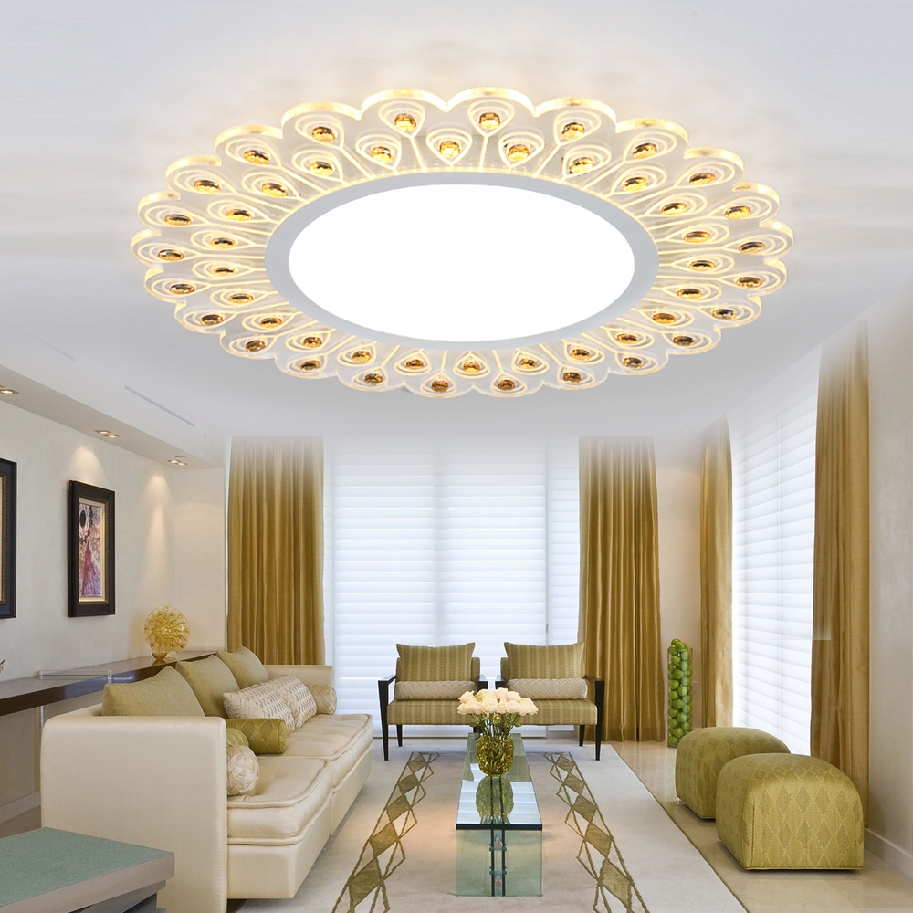 Such lamps are well suited for any room: bedroom, hall, living room. For each room you can pick up something interesting. For bedrooms, a great option would be fixtures with smooth lines and dim lights. For the living room or hall, you can take crystal options or massive chandeliers in a modern style.