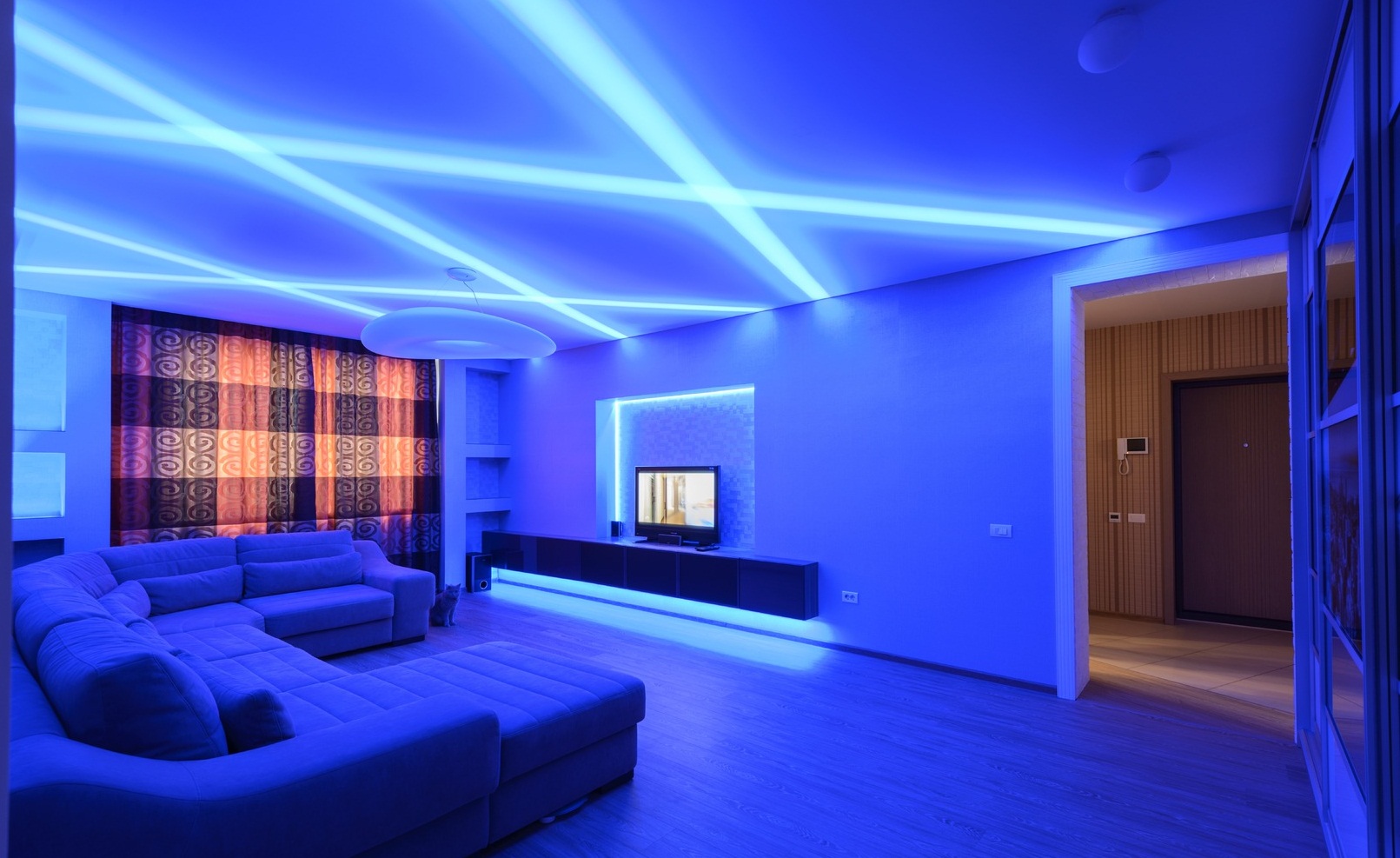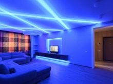 - If the ceiling lights are a whole composition, then it is often included LED bulbs. They often form a kind of illustration or ornament. LED lamps are installed for the purpose of additional color in lighting - mauve or blue, which perfectly shade the main source of light.