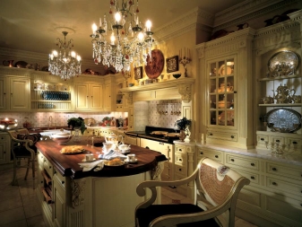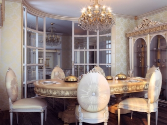 - The most pompous and catchy models are inherent in style. baroque - truly royal direction of the interior. Chandelier in these rooms - an indicator of luxury and wealth. It is a massive structure, sparkling with hundreds of particles of crystal, gold and stones. Often in this design presented an imitation of candelabra, between which are hung chains of beads and stones, filling the space with an elegant "cobweb".