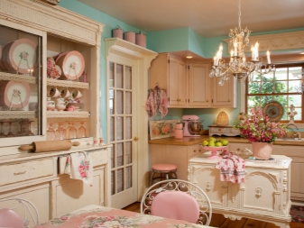 - Those who decided to decorate a room in a glamorous style Chebbi chicit is worth looking at the peculiar chandeliers of this style. Almost always, the models are designed in a combination of white and pink shades. Such chandeliers are very voluminous and ornate. They look like baroque products, but shebbi-chic lamps are often decorated with plastic flowers, feather trim of the lampshades and other attributes of glamor. The frame of such chandeliers is decorated with crystal or chains of decorative stones hanging between the shades.