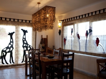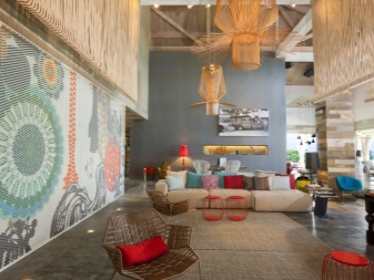 - Insofar as ethno style conveys the national flavor of many countries, the design of the lamps involves the use of various materials - from natural wood to exotic elements such as animal skins or coconuts.The constant characteristic of the ethnos is the predominance of warm colors in the lampshade.
