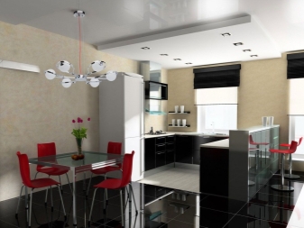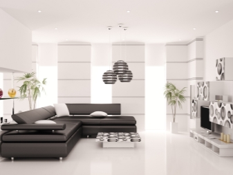 - Techno style virtually eliminates suspended chandeliers on a long cable. All products are almost flush with the ceiling and made of metal or plastic, aged in gray, black or white. Usually one product consists of several fixtures.