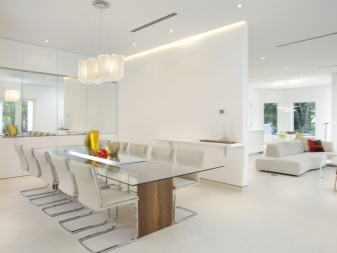 - Style minimalism closely related to geometry. It is dominated by suspended chandeliers with shades of various geometric shapes, as a rule, in monochromatic colors. The lighting device can take on an accent role in the interior.