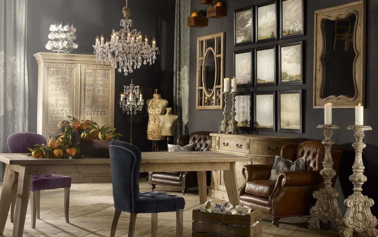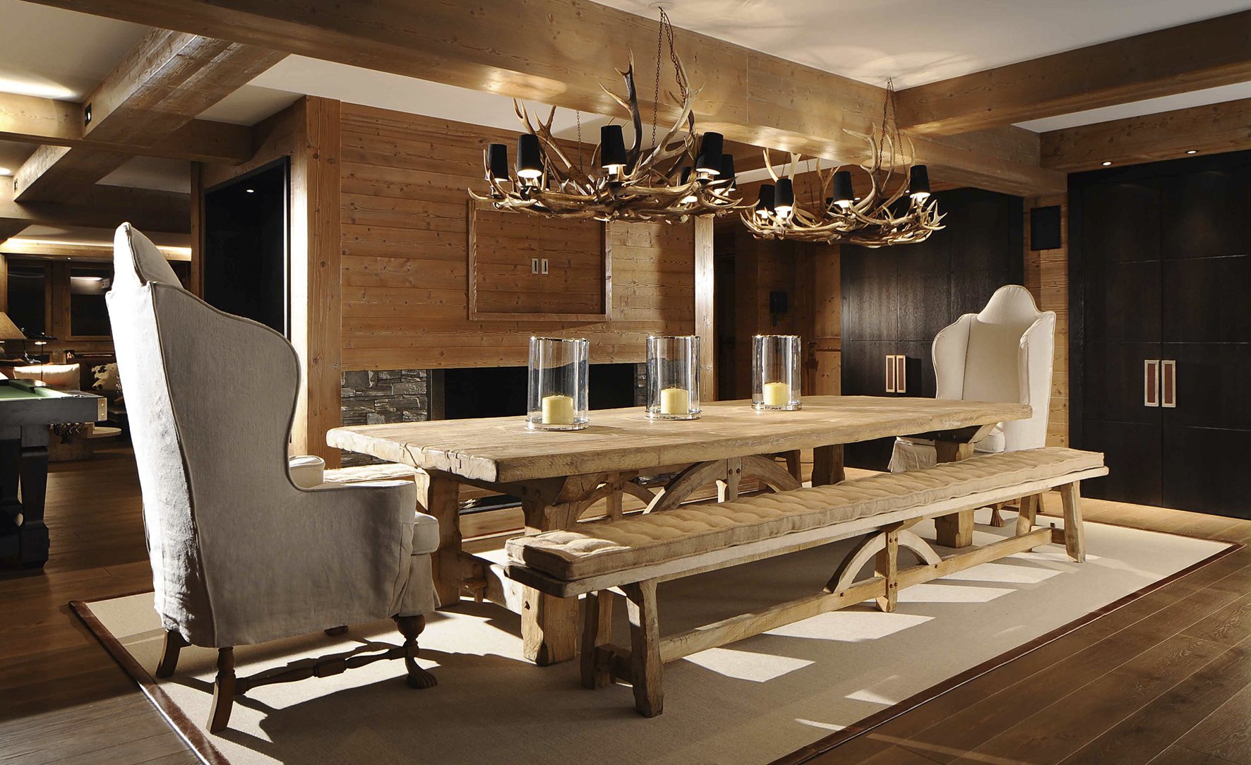 - Hunting style distinguished by chandeliers made of wood and metal, often decorated with animal horns and tree branches.