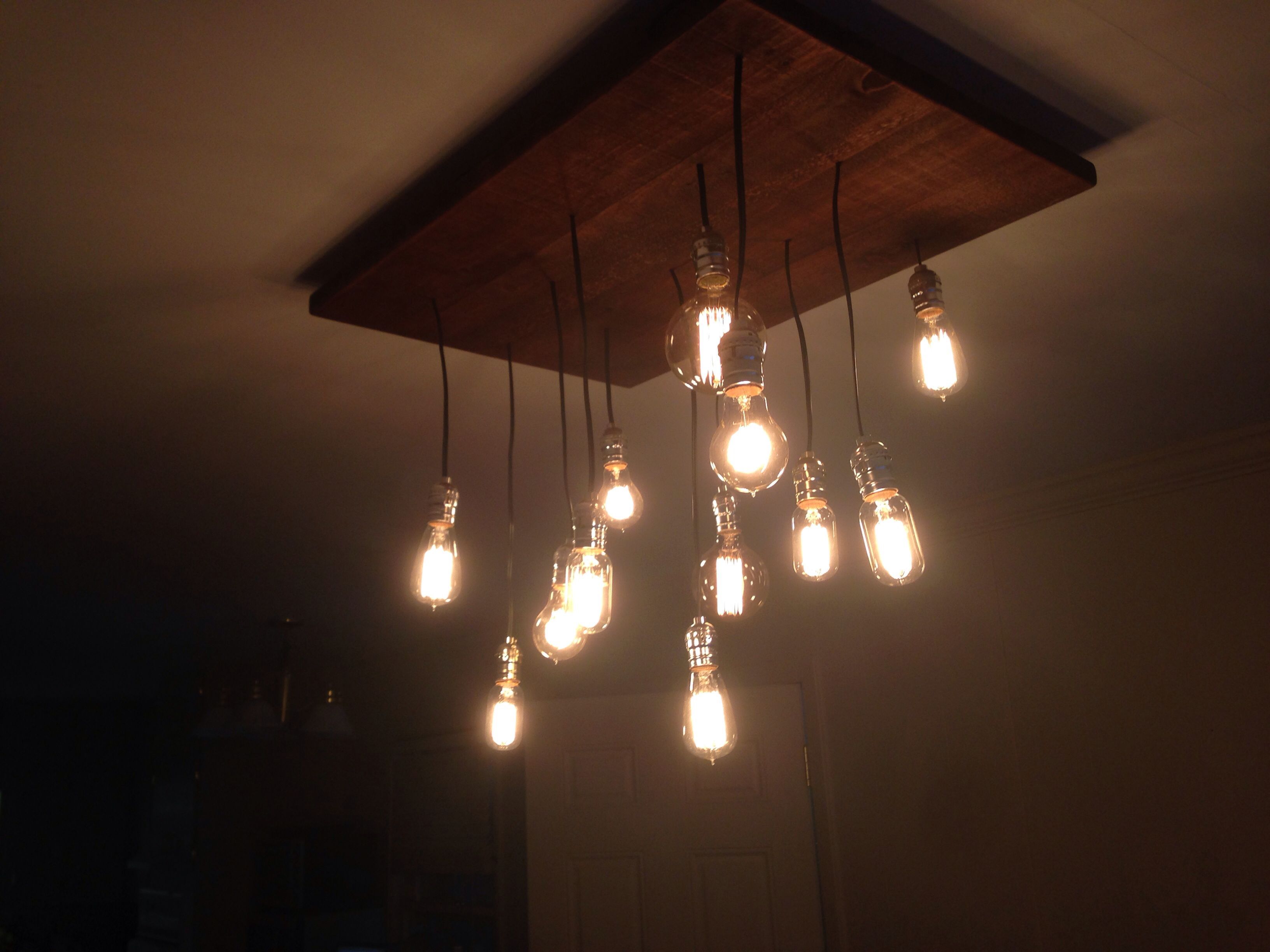 - True incarnation of lamps in industrial style - Models combining a wooden ceiling mount with a few hanging lamps. Ceiling lamps are made by imitating the shape of a light bulb and are attached to a wooden base with the help of exquisitely interwoven cords.