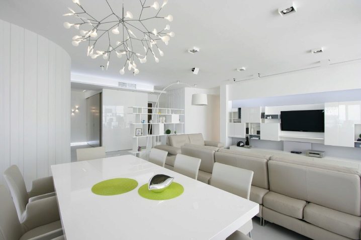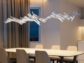 Of great importance are also the height of the ceiling and the size of the room.For small rooms with low ceilings, suitable solutions are products made in the form of mounting strips. For large rooms, a multi-track suspended chandelier is an excellent option.