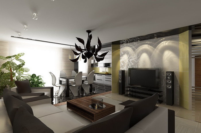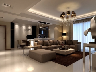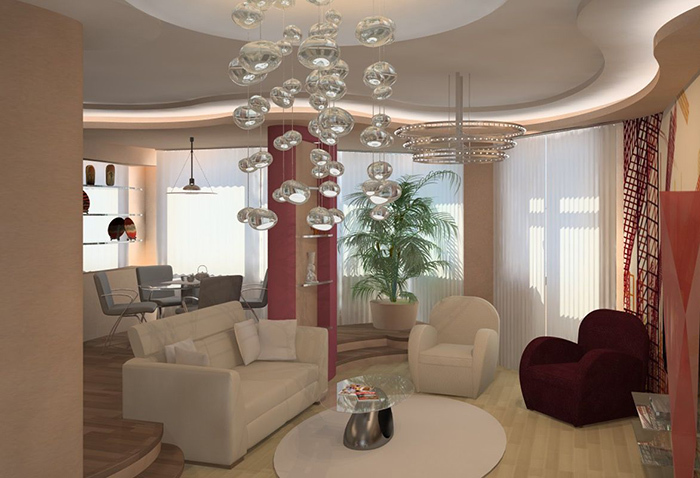 If you want to make the room more spacious, you need to fill the space with light. This will help a suitable chandelier, which also will demonstrate the good taste of the owner of the apartment.