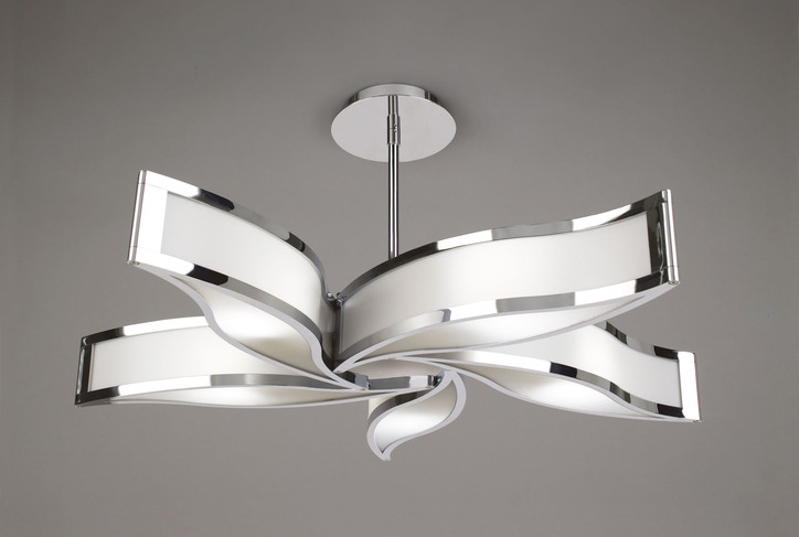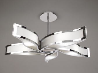 Chandelier not only performs the function of lighting - it is an important element of the decor, the choice of which will need to be approached as seriously as possible. Properly selected lighting device will emphasize the beneficial form and texture of materials that were used for finishing the room. Unusual streamlined shapes of ceiling chandeliers give the interior integrity and completeness.