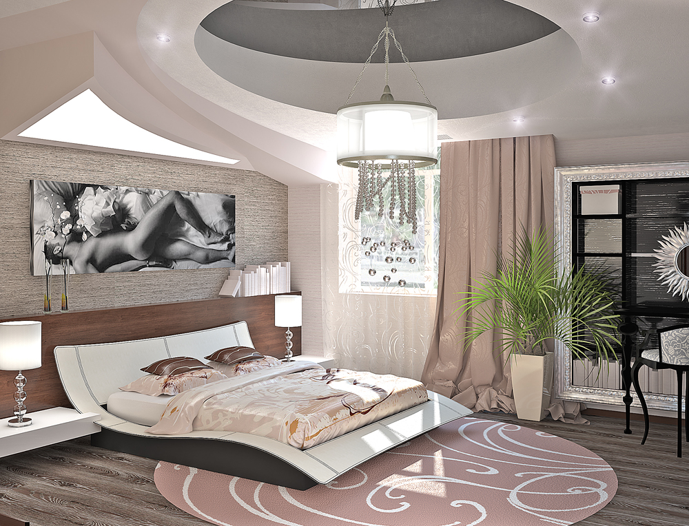 - As a rule, many tend to create in the bedroom a cozy and relaxing atmosphere. To achieve this goal, spots are the best fit. The design of such a device may consist of moving lamps, which are installed in several rows, or of rotating lampshades, which allows you to adjust not only the intensity of illumination, but also its direction.