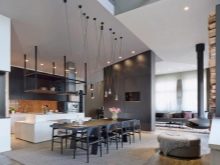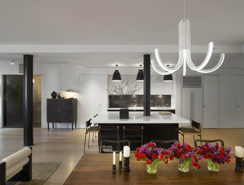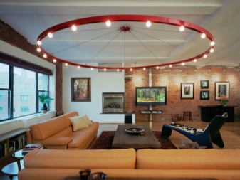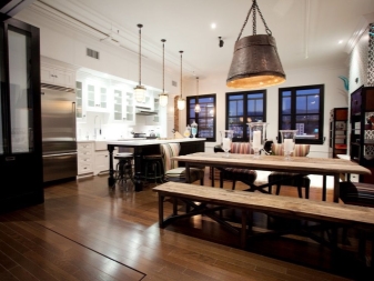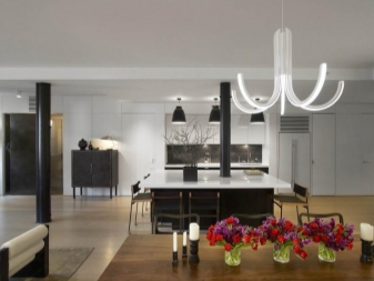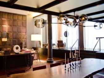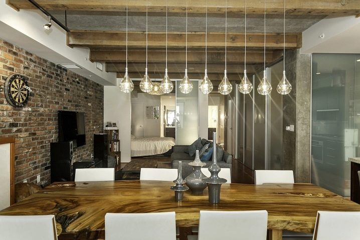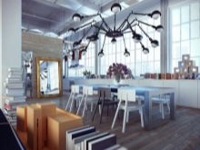 For each of the rooms a certain type of chandelier is chosen. Initially, the loft rooms did not have partitions and walls, the whole room was an apartment, so each of the functional areas was highlighted in its own way and with its own device.This moment also should be considered when choosing a chandelier.