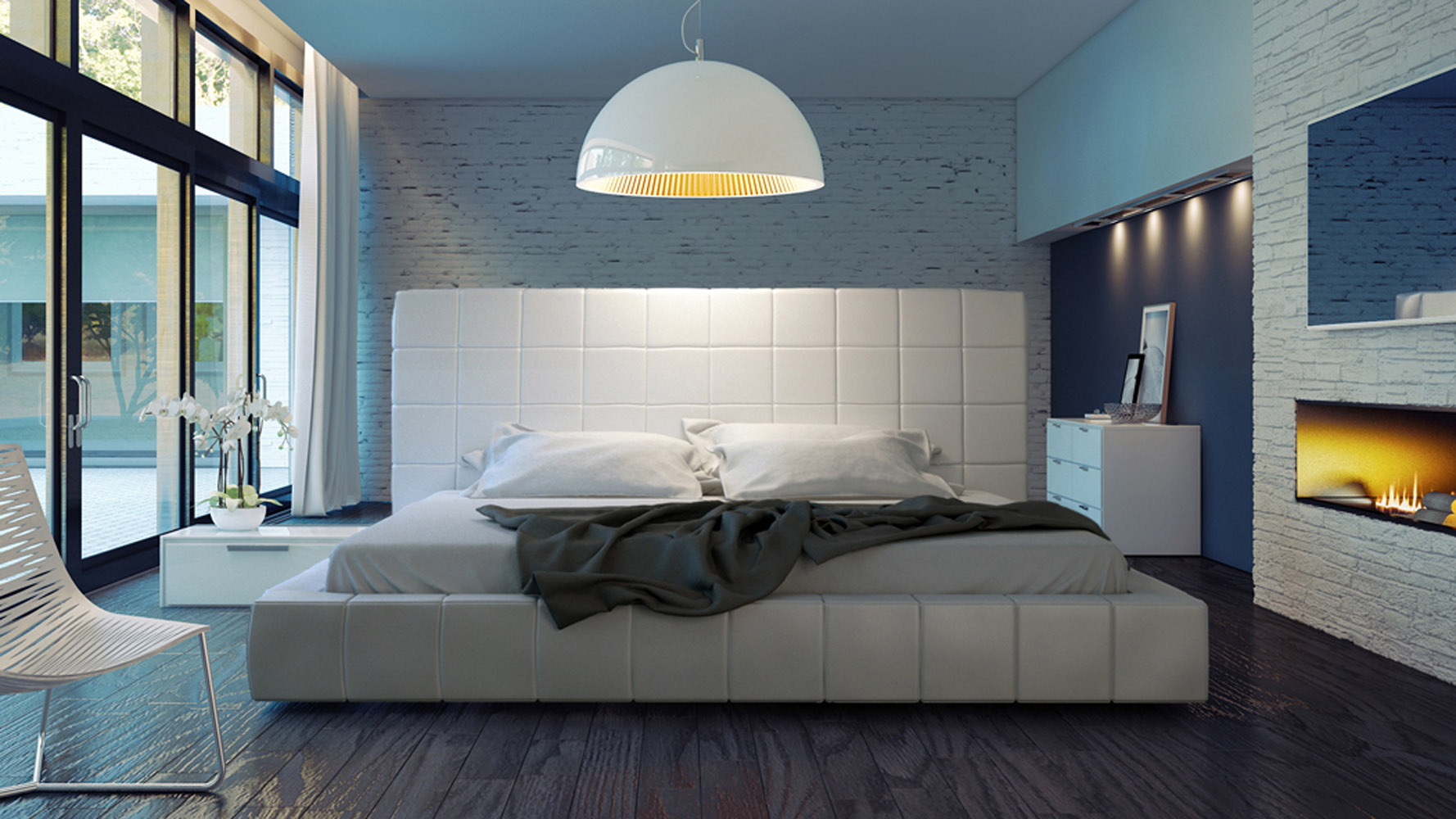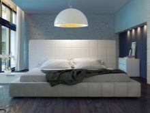 - For the bedroom you should choose a single model on a flexible but durable cord. It is possible to hang on a similar chandelier on each side of the bed above the bedside tables, placing the hangers almost close to the wall. Also a good choice would be to use a few small bright spotlights just above the head of the bed. In the bedroom, the chandelier should not be located in the middle of the room, as usual, but in the sleeping area.
