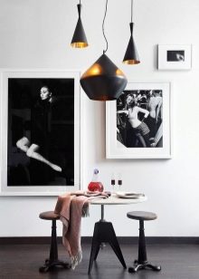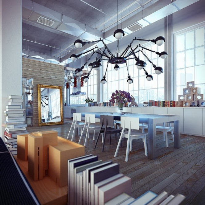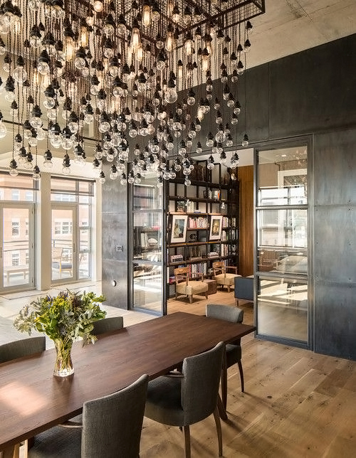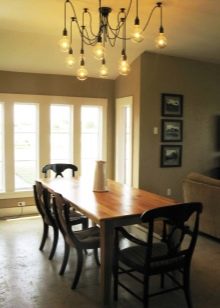Loft imposes sufficiently rigid restrictions on the choice of material from which chandeliers are made, on colors and even on the intensity of the glow of light bulbs. In addition, there are certain rules that indicate to place different types of chandeliers at different heights. All this is done with a single purpose - to divide the space as efficiently as possible, highlighting each of the zones in a special way. “Functionality is above all,” says one of the rules of stylistics.