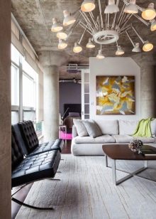 Regardless of the room, it is worth remembering that the loft style does not accept the delicate romantic vintage options for colors and designs. Do not set up experiments, especially if the chandelier is expensive.