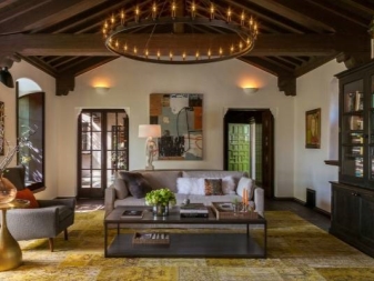 - For living room You can choose from a fairly large model range. Both small spotlights and spider chandeliers or classic crystal baroque options will fit in here. The use of a metallized large sphere, going down to the middle of the distance between the floor and the ceiling, is also not forbidden.The choice of a single option is carried out after analyzing all the essential factors, such as natural lighting, the overall color content, the prevalence of a particular material, the height of the ceilings and the total area of the room.