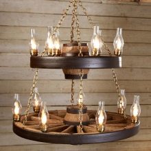 Using several wheels that differ from each other in diameter, you can make a three-dimensional and spectacular multi-level chandelier. It will be the main decoration of a large hall in a luxurious restaurant. All real cartwheels and carts are almost the same size. In this case, the natural wheel serves as the basis, and two additional elements must be created by yourself.