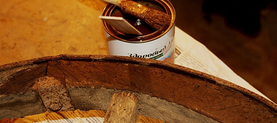 Then you need to cover the wheel with a solution of linseed oil with turpentine. Apply the product in several layers. You can use a tool that protects the tree from rotting and various external factors.