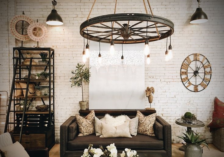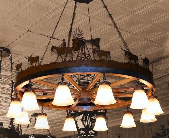 Behind the window is a century of innovative technology, but still, semi-antique decors and styles that are common to ethno are widespread. Most often they are used to design themed cafes, restaurants, hotels and other similar establishments. Individual items (large wooden beams, horseshoes, cartwheels, etc.) decorate apartments and country houses. To decorate the room in an unusual way, in the center of the room you can put a chandelier in the form of a wheel. Such a lamp will attract the attention of all who go to your house.