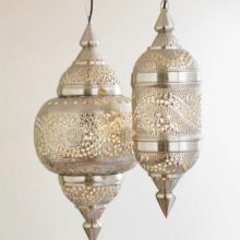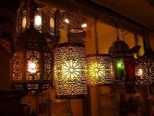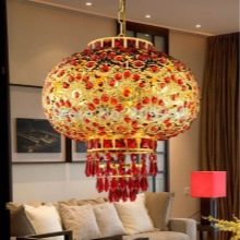 This style is the complete opposite of the previous two. Arab lamps are always richly decorated. They are decorated with details made of crystal and precious stones or metals, stylized for them. The surface of the lamp can be decorated with various curls and forged items. As for the shape, Arabic-style lamps, as a rule, have the appearance of the dome of the palace towers.