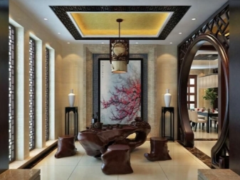 The chandelier plays an important role here, emphasizing respect for the culture. The best option is a beautiful lamp made of rice paper or frosted glass, decorated with hieroglyphs or images of some important historical moments in the fate of the country.Additional lamps in this interior should not be much.
