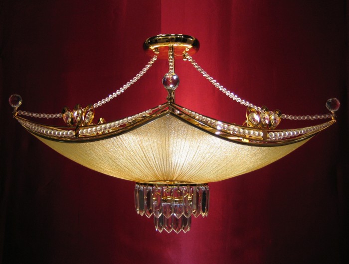 For this style it is worth choosing sunny colors, gold details. Chandeliers are the same magnificent products decorated with gold and monograms. Best of all, such a product looks great in a bedroom or living room.