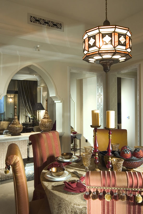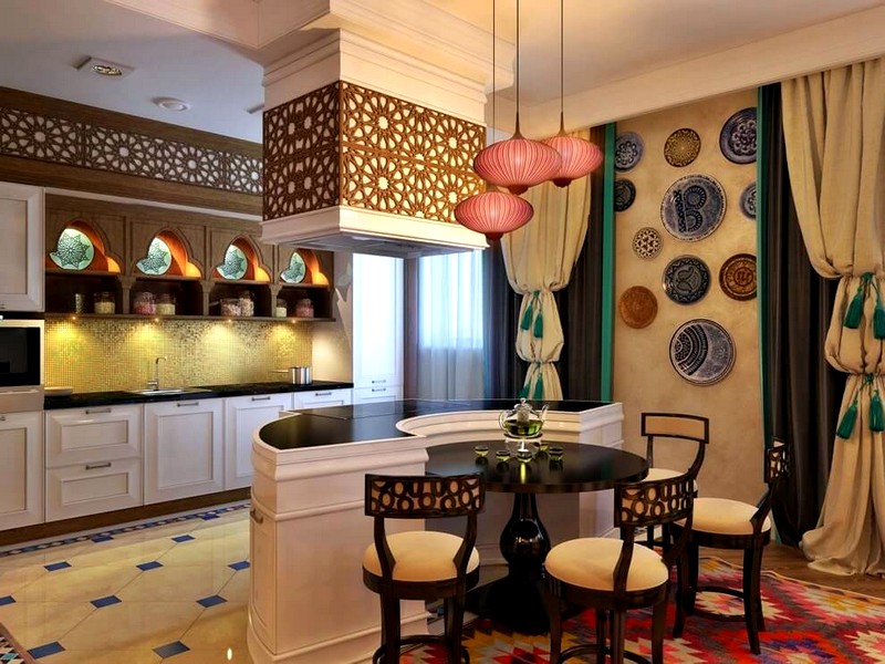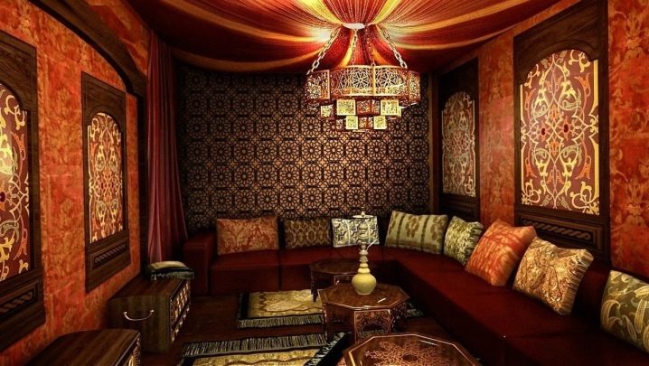 Many luxurious details are used in the Arabian interior. Therefore, it is very important that everything is thought out to the smallest detail. All parts of the interior should be combined with each other, whether it is painted on carpets, patterns on the chandelier or embroidery on bedspreads. Only in this case, the modern room in the Arabic style will be thoughtful and stylish.