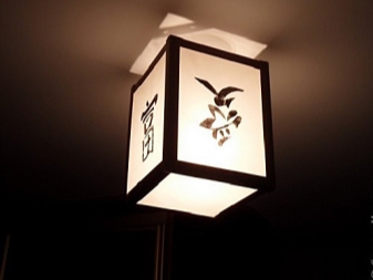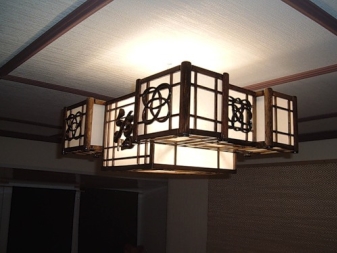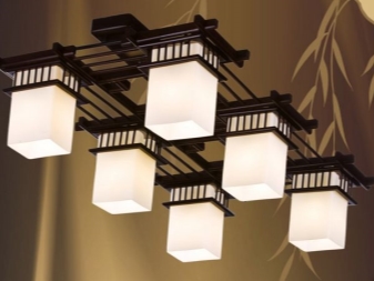 Another feature of such lighting - in the design. Japan is a strict geometric shape. As a rule, the Japanese chandelier is square or rectangular. Such outlines are inherent not only to lighting fixtures, but also to other objects in the room.