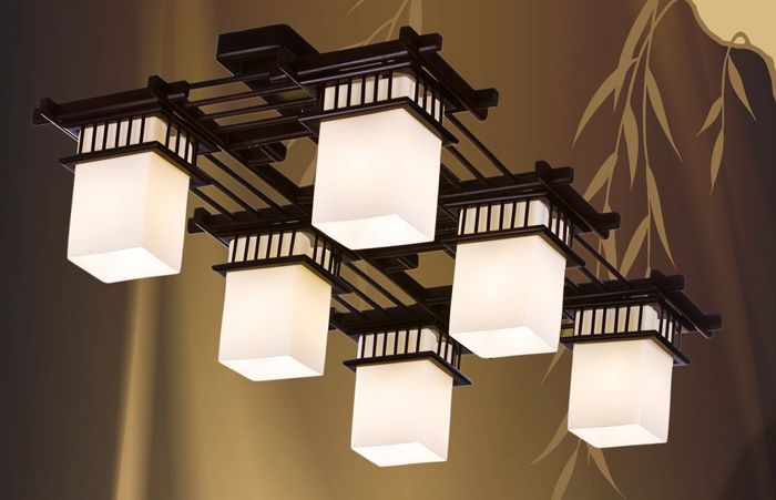For the manufacture of chandeliers in the Japanese style are used exclusively natural materials. For the manufacture of the frame most often used bamboo.Currently, instead, manufacturers use different types of wood - both exotic and Russian (oak, wenge, and so on).
