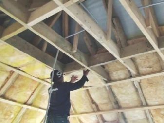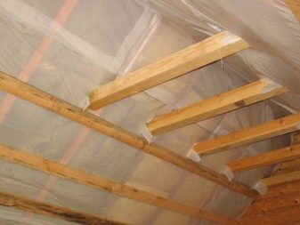 Next comes the turn of the ceiling vapor barrier - it is ensured by plastic films, glassine or roofing felt. When attaching such materials to rafters, glue is applied or rails are packed with a step of 0.4-0.5 m.