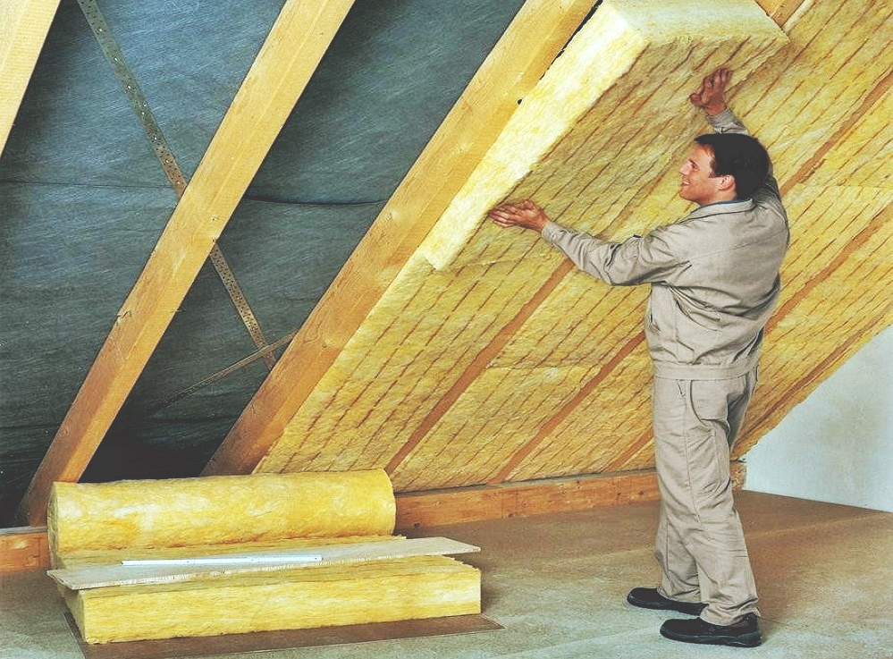 When working, it is recommended to monitor whether the rafters sag under load and whether the surface is flat. Deformations are detected during inspections at the building level, and if they exist, you need to take a plane. When the crate is ready, you can insulate it with your own hands, bringing basalt mats inside. The width of the individual mat should correspond to the gap between the rafters, and the thickness - their width. If the mat is very thick, heat insulation is placed in several layers.