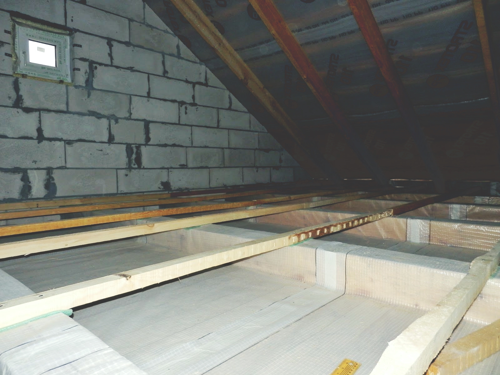 Experienced repairmen have long ago developed the attic insulation technology from the inside and strictly follow it. To the top of the insulation was covered from moisture, you need to bypass all the wooden beams and attach, using a stapler or vertically directed slats, a special film. She lay in layers with overlap, the fastening is made with special tape. Then a lathing is made, which is made of rails 80-100 mm wide parallel to each other, which are stuffed onto rafters.
