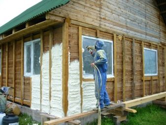 Polyurethane compounds, in addition to wall insulation, perfectly cope with the incorporation of various cracks in them. In addition, polyurethane foam is filled with voids during the installation of window blocks and pipes. With the help of this material is carried out insulation of the basement, attic. Two-component foam is purchased for processing the walls of houses of frame type.