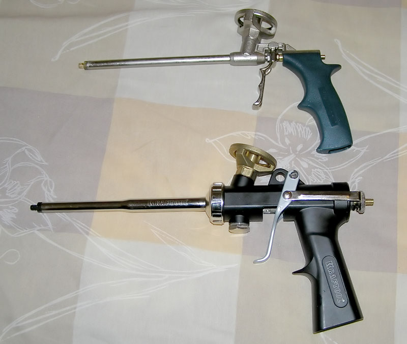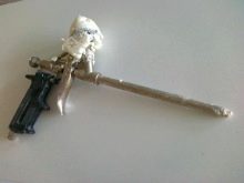 Based on all of the above, we can conclude that when starting work with a foam gun, you should always have a bottle of cleaner available. Forethought will help in time to clean the expensive equipment from residues of not yet hardened foam, to extend the performance of the device. If the sealant is frozen, the use of brute force can damage the gun, especially if it has a Teflon coating. The device in this case becomes unsuitable for reuse.