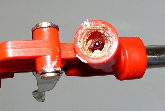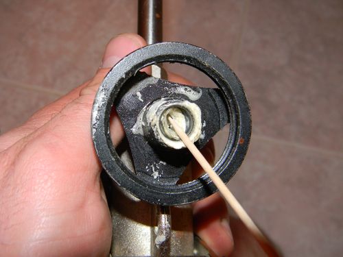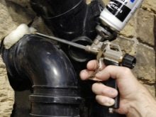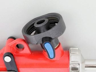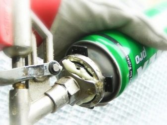 - There is a small ball near the place for connecting the balloon. It is necessary and apply a small amount of Dimexidum on it, and then attach a bottle with a cleaner. After a minute or two, you can try to press the adjustment lever.