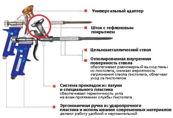 By means of a sealant and a pistol for its supply, different gaps and voids are sealed up, and various manipulations are made. But, despite the simplicity of the design, this unit requires special attention and care.