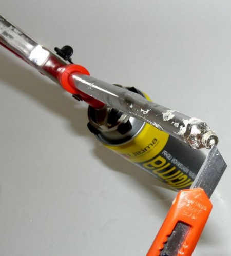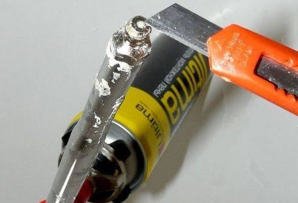 - Immediately you need to clean the barrel from adhering sealant. For these purposes, you can use a knife, only carry out cleaning very carefully so as not to damage the valve.