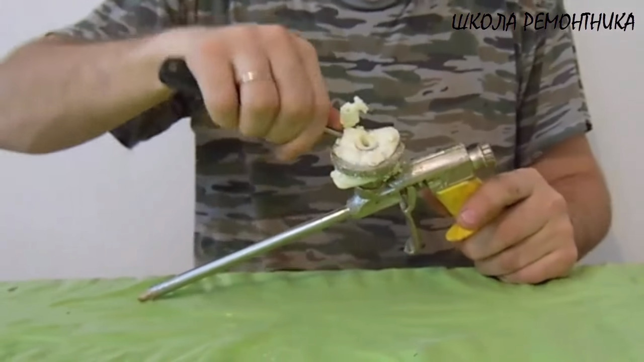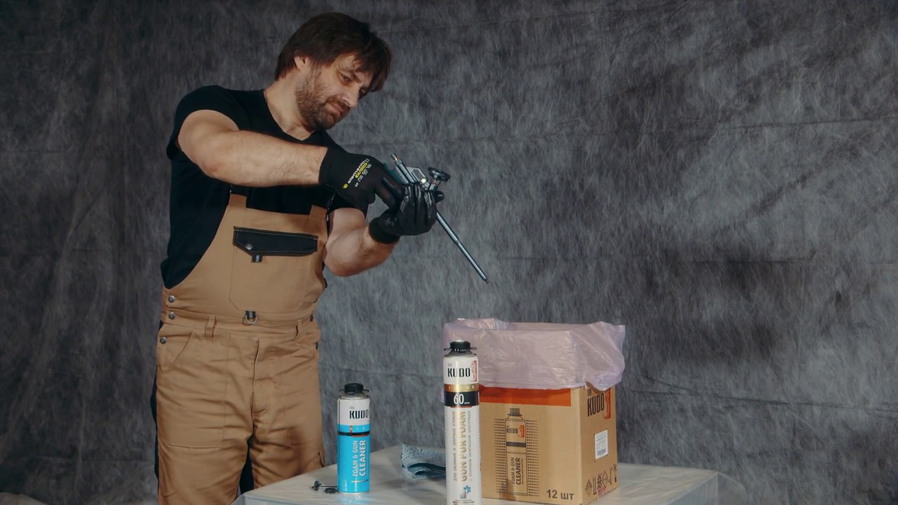 On how to clean the gun from the dried foam, see in the video below.