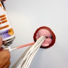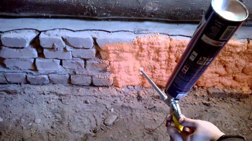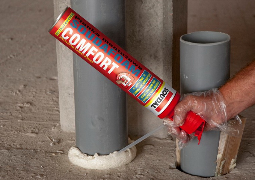 You can improve the quality of waterproofing, if you pre-treat the surface with a grout. The same compositions as for protection against moisture can be applied to sound insulation in any room. Removing excess portions of the substance helps rags, but it is better to avoid smearing the foam. Hardened surpluses are cleaned with any solvent. The assembly foam which has fallen on hands is cleaned with water solution of table salt, laundry soap or vegetable oil.