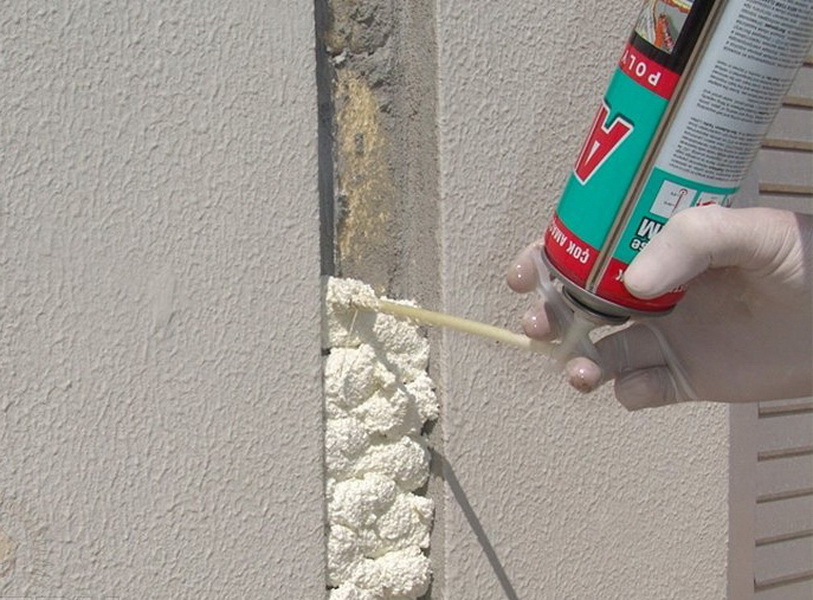 In addition to the flow rate, it is useful to know about the nuances of the use of foam in a building (repair) operation. The sealant on the polyurethane base can be used to close any void, crack or seam larger than 20 mm. In addition to sealing gaps in windows, doors, walls and ceilings, this sealing compound can help in other cases. Any use of foam in the room requires careful ventilation during all processing, and ideally, until the sealant completely cures. Foam processing is used if you need to lay and isolate: