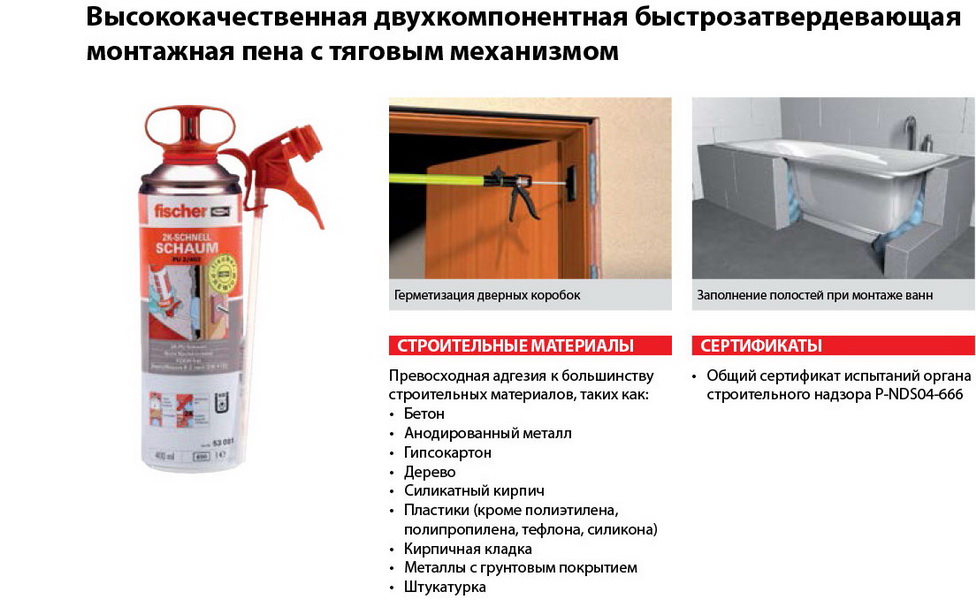 High-quality reagent should have from 88% of clogged pores. Its other valuable property is its excellent adhesion to almost all widely used materials. But It is important to remember that even the best foam does not stick to:
