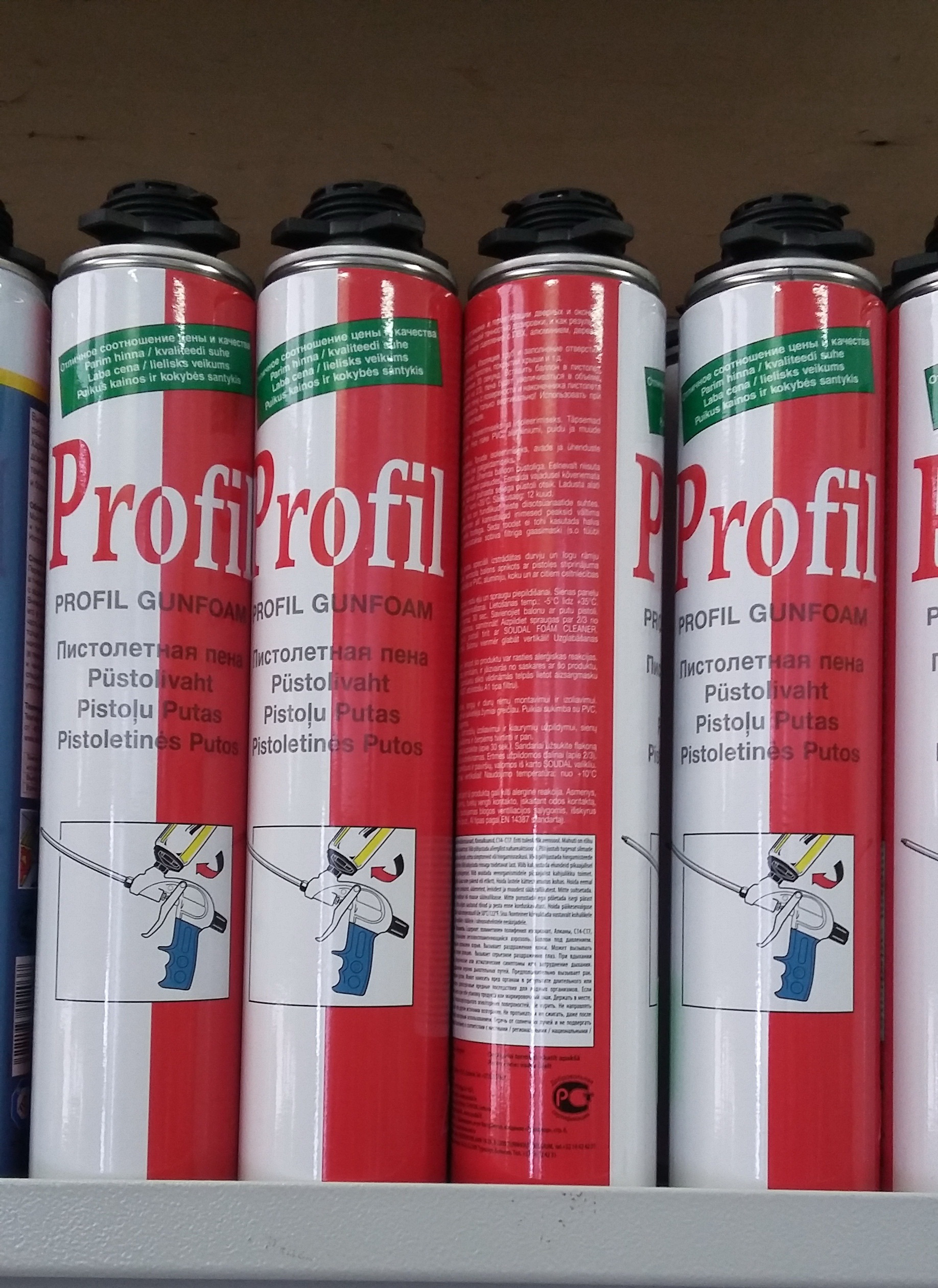 Company Profil offers both pistol and amateur (pipe) solutions. The pistol version comes in a container with a capacity of 0.625 liters. Good market position has Makroflex Standart. This product is easily found in the shops of even the most remote corners of the Russian Federation. Foam adheres perfectly where it is needed, and is distinguished by minimal re-expansion.
